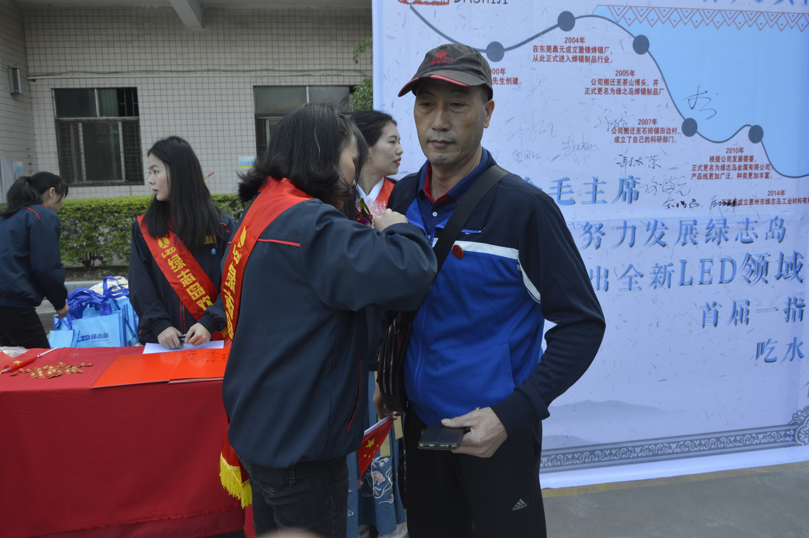 ▲The welcoming staff wear the portrait of Chairman Mao for the guests