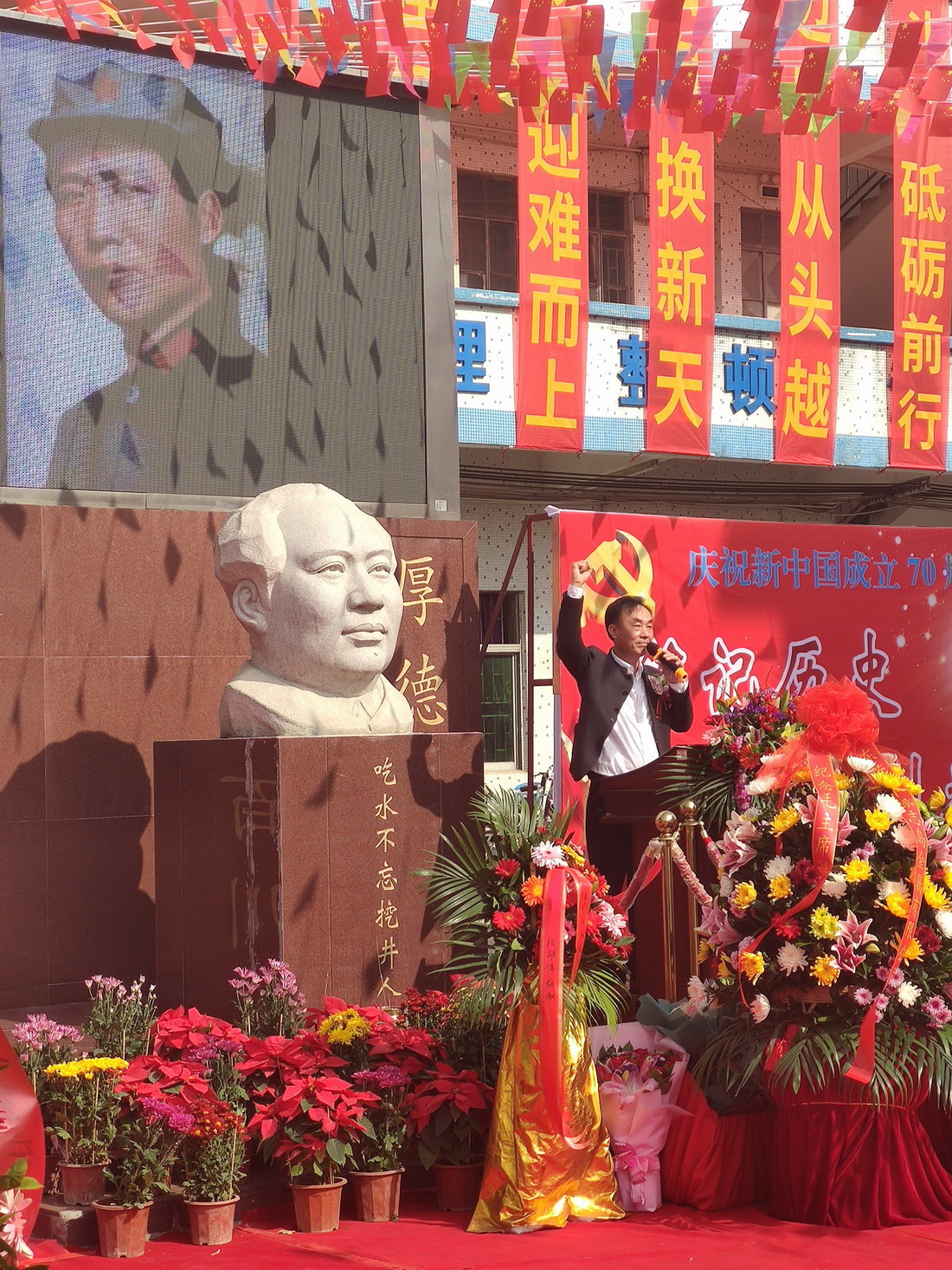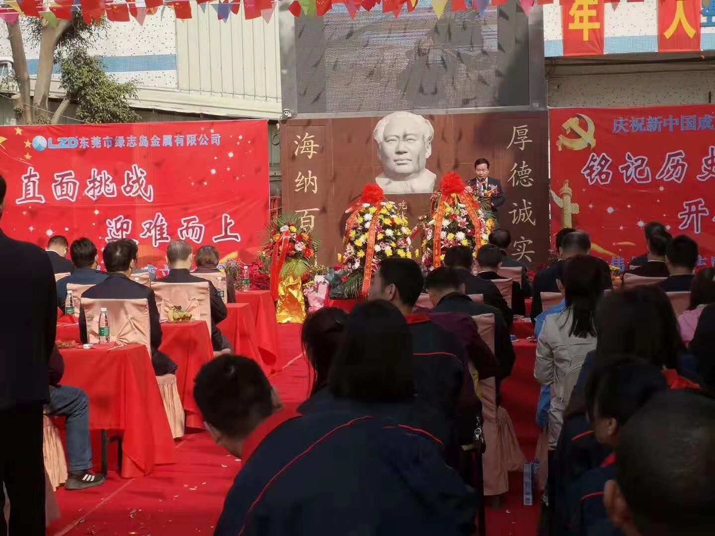 ▲Mr. zhuzusheng, chairman of Lvzhi Island, led us to shout -- long live Mao Zedong Thought